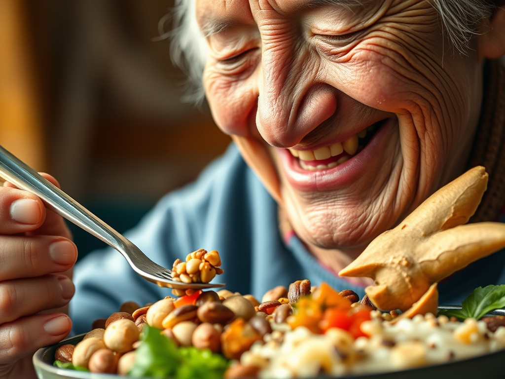 しっかり噛めることで食事の質が向上します。床付きの義歯との決定的な違いは胡麻や生姜やナッツが食べられます。これらは栄養価が高く長寿に関連する食品として有名です。肉や野菜は、床付き義歯でも食べられますが、インプラントでは格段にスピードが速く十分量を食べることができます。